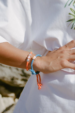 Make a bold statement with the Fiji Bracelet in Blue, an exclusive collaboration between Jasmine Alexa and Petite Chou. Handcrafted in Melbourne, this vibrant piece features a striking blue para cord finished with an elegant gold-toned heart charm detail. The adjustable design ensures a comfortable fit for any wrist, while the durable construction makes it perfect for everyday wear. Whether worn alone as a pop of colour or stacked with other pieces for a layered look, this piece brings coastal-inspired style to your jewellery collection. Effortlessly versatile and undeniably chic.