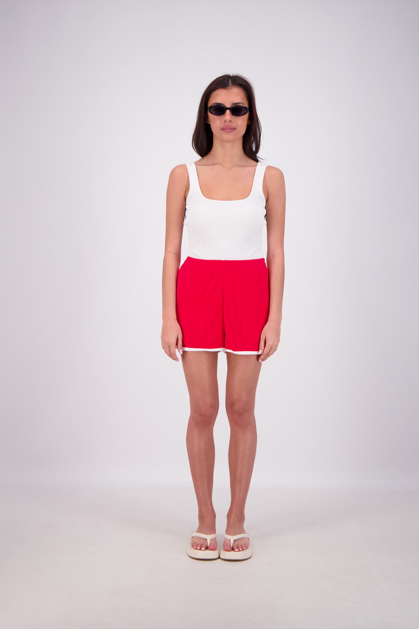 Crafted from soft cotton terry, the Kuhio Shorts feature an elastic waistband, side pockets, and contrast stripe detail for comfortable, stylish summer wear.