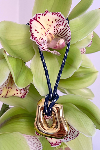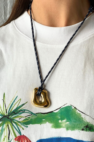 The Maldives Necklace, a collaboration with Petite Chou, features a statement gold-toned pendant on adjustable para cord, made in Melbourne to bring sun-kissed island vibes to your everyday adventures.