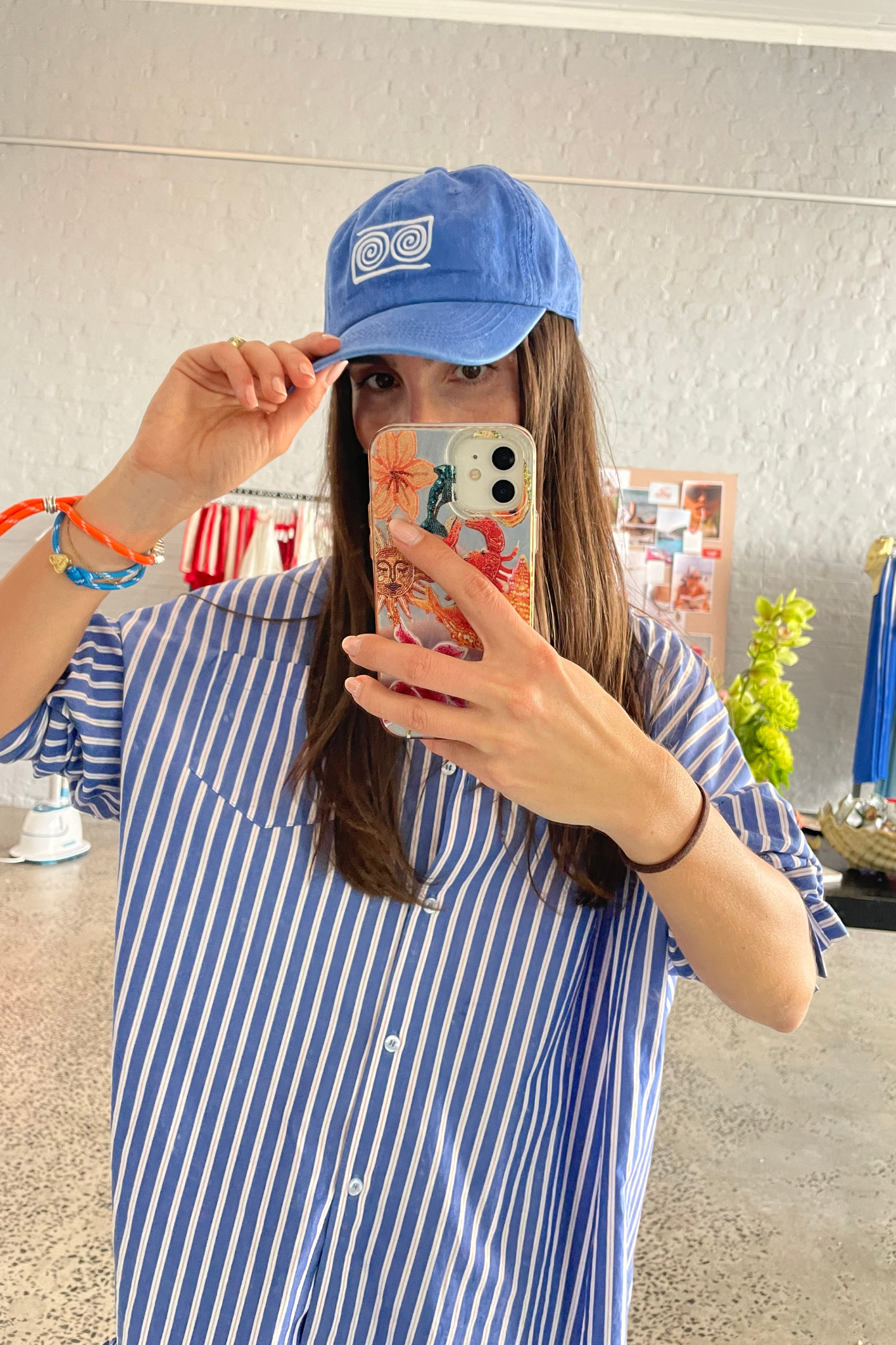 Discover the Paradiso Cap Blue—your go-to accessory for effortless style and comfort. Constructed from breathable 100% cotton, this classic dad cap features a striking embroidered swirl design on the front and our logo on the back, giving you a polished look that works with any outfit. Whether you're protecting yourself from the sun or adding that final touch to your ensemble, this cap delivers quality craftsmanship and versatile appeal.